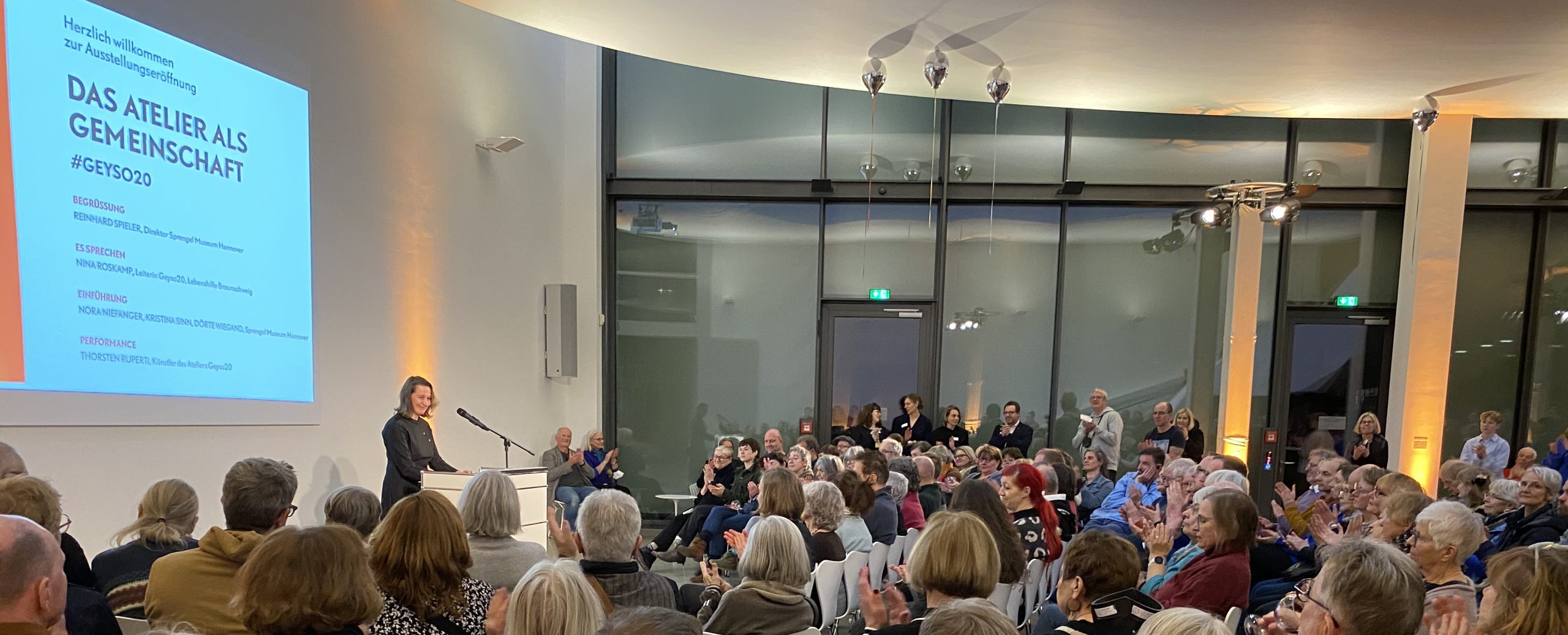 Zahlreiche Gäste, darunter viele der ausstellenden Künstler:innen, feierten einen wunderbaren Auftakt der Ausstellung „Das Atelier als Gemeinschaft #Geyso20“ im Sprengel Museum Hannover.